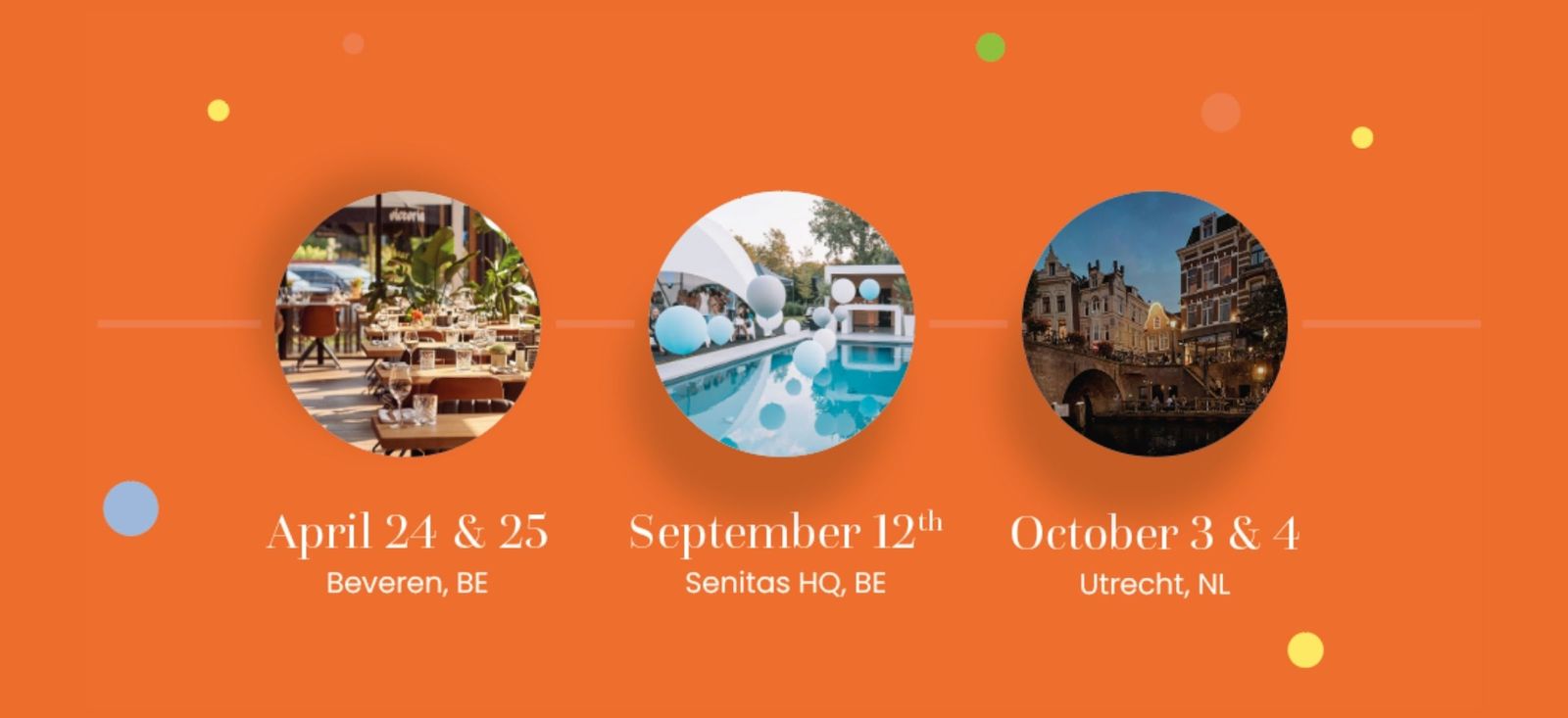 Pour célébrer les 15 ans de Senitas, nous vous invitons à trois événements exclusifs dans trois lieux différents. Chaque événement aura sa propre ambiance, mais avec un fil conducteur : connecter, inspirer et envisager l’avenir ensemble.